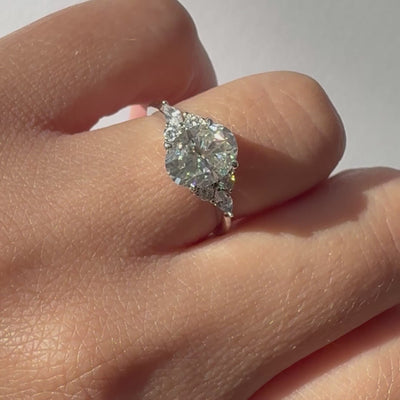 En son centre, une moissanite ovale de 2 carats reflète la lumière avec une intensité rare, telle une promesse éternelle.